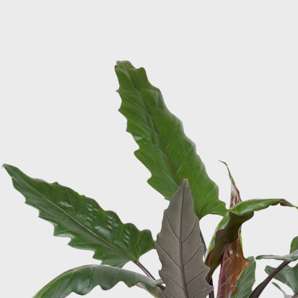 The striking green shiny leaves of the Alocasia fit perfectly into any stylish interior.