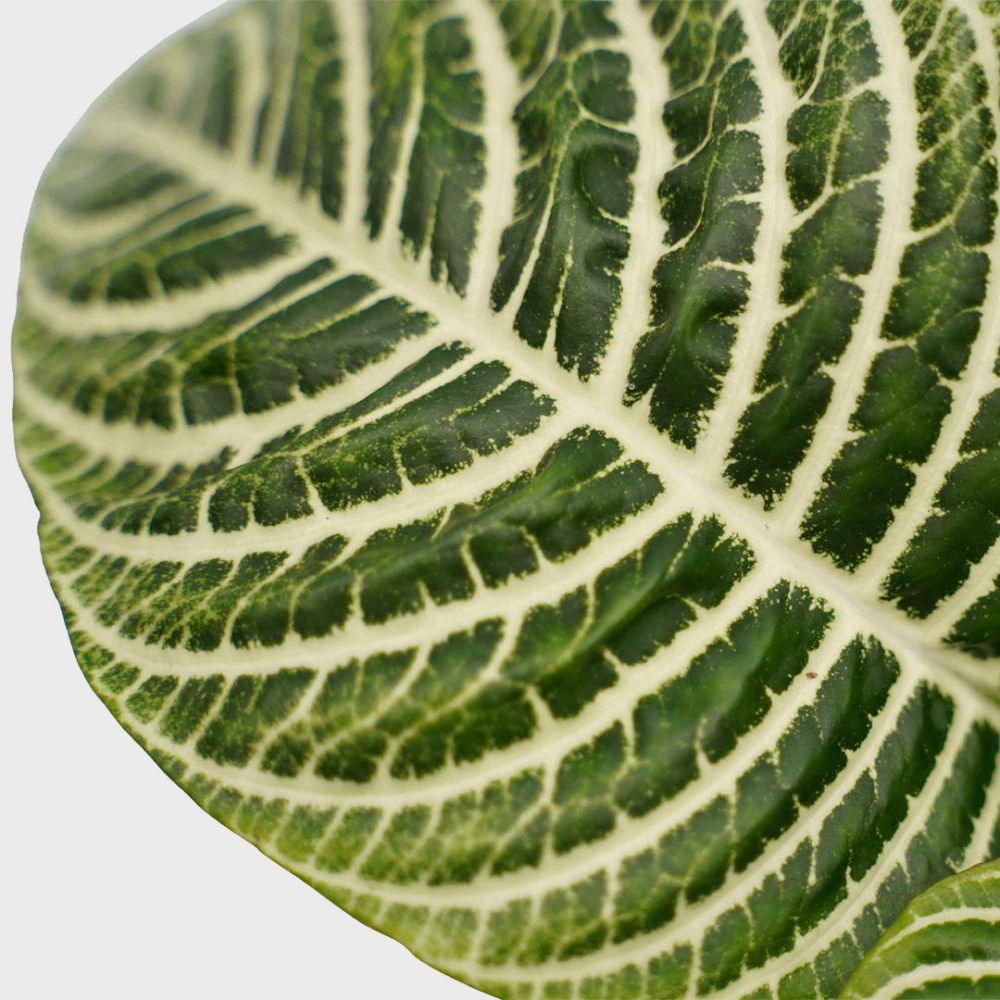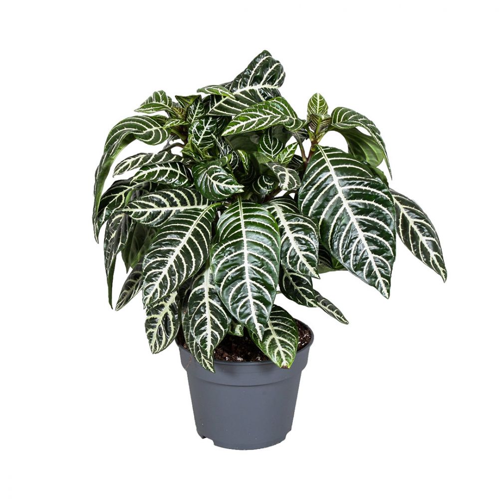 The Aphelandra Squarrosa has dark leaves with white markings along the veins.