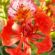 The flowers of Delonix are large, with four spreading scarlet or orange-red petals and a fifth upright petal called the standard petal.