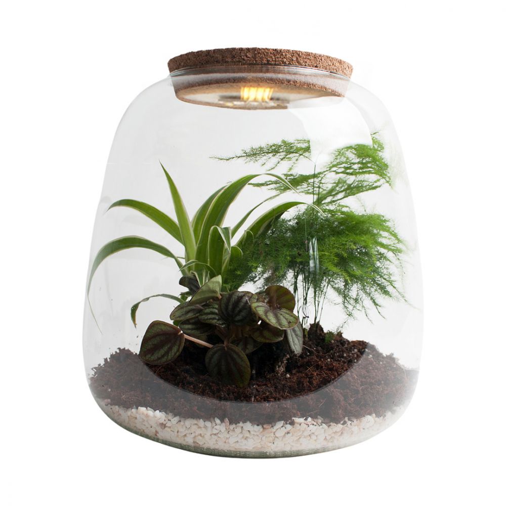 This terrarium has a light. This allows you to always enjoy the terrarium.